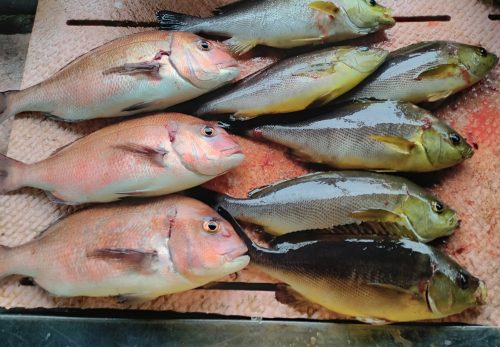 マダイ、シマアジ、ギンザケ(サーモン)、クロソイ、イサキ等